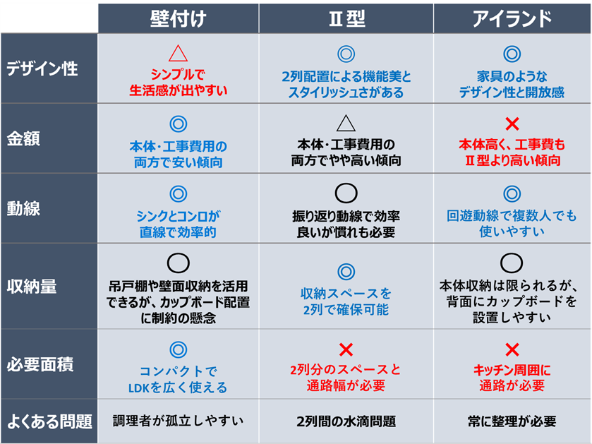 - 壁付け・Ⅱ型・アイランドキッチンの違い