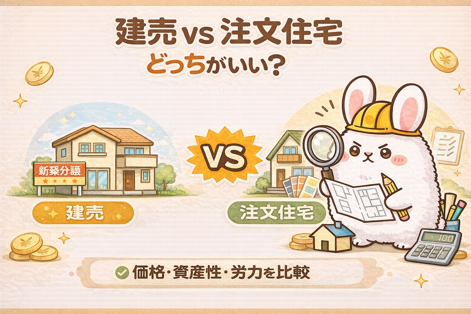 「建物も評価される短期〜中期なら注文住宅、土地の評価が強く出る長期なら建売」というのがガチうさぎ的な結論です。