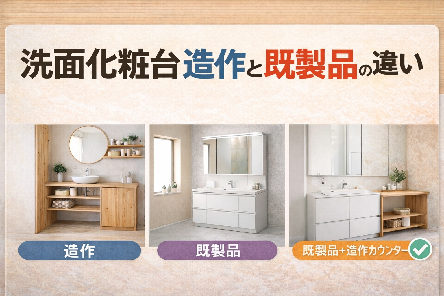 - 造作洗面台・既製品・既製品+一部造作の違い